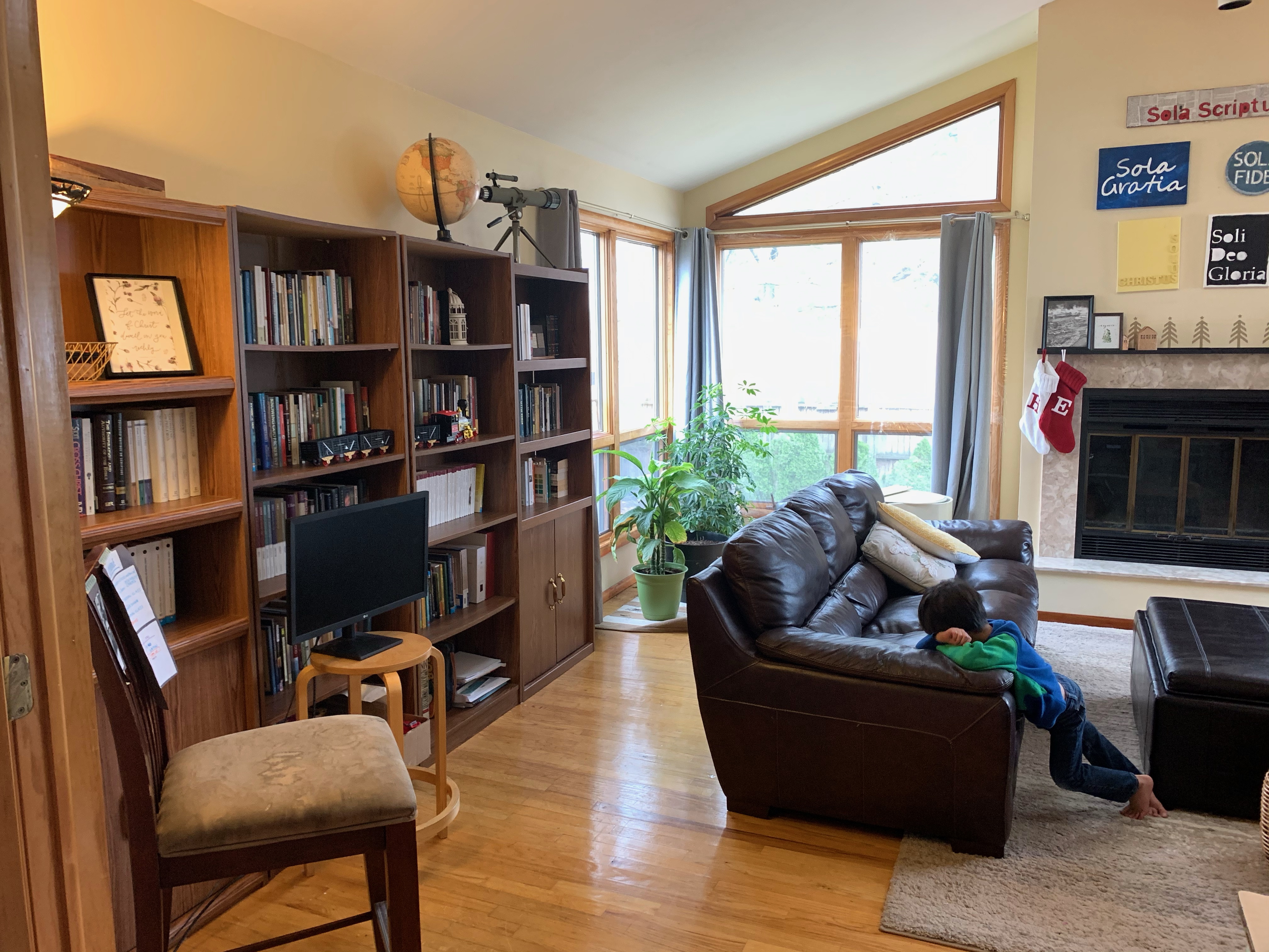 Before unpacking the boxes from my parentsโ place, I move our bookcases from the second floor down to the living room. Arranging the shelves of our now merged libraries, I think about which ones I want to be eye-level for guests, imagining that after the pandemic, they’ll be able to browse our shelves before and after group gatherings. Perhaps standing there with needs God alone knows, theyโll spontaneously pull out a book and read a pivot point sentence. Perhaps one of the books here will hold out hope for one of my own children during their own darkness of doubt or trial.